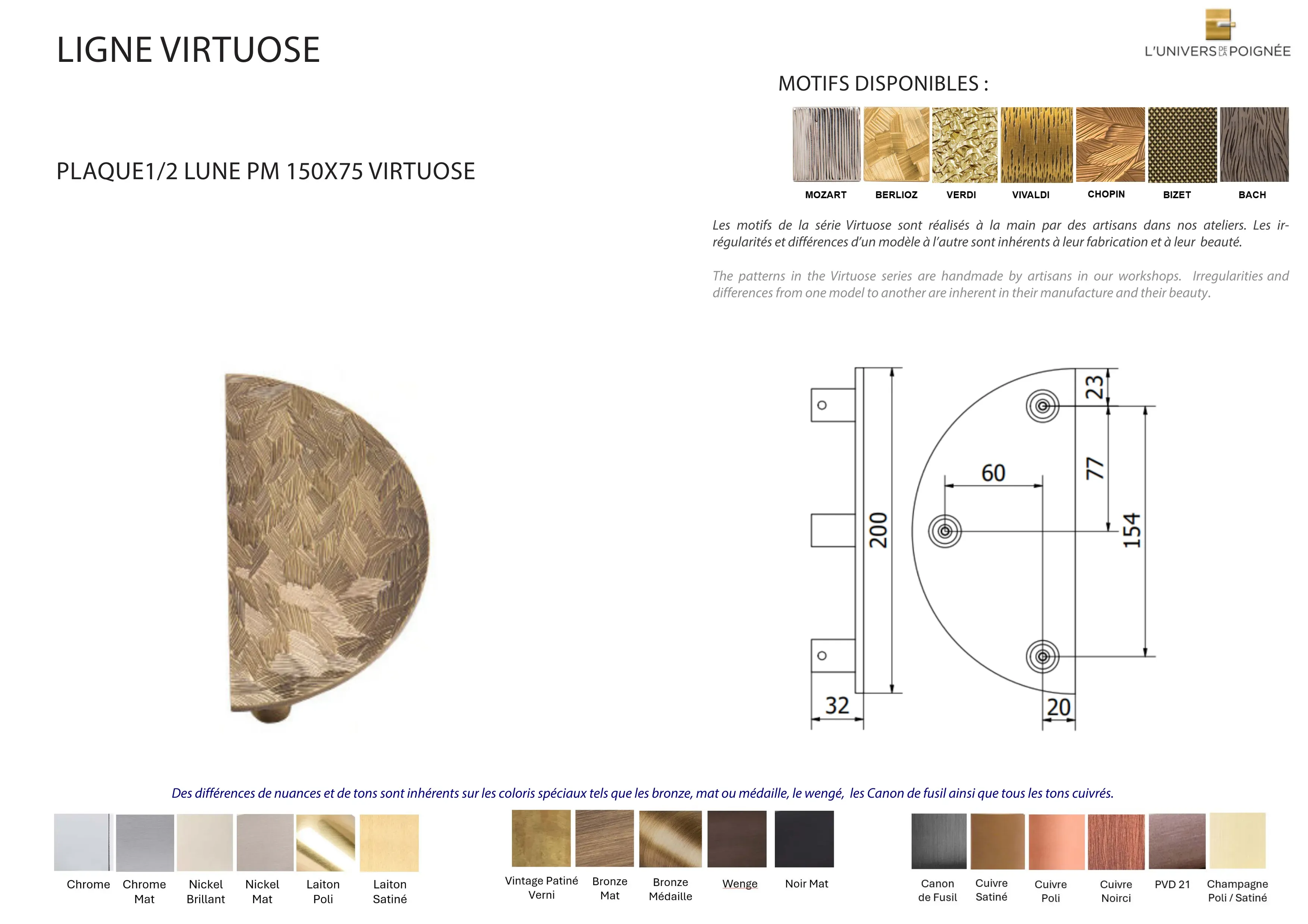Plaque 1/2 lune VIRTUOSE dia 150mm